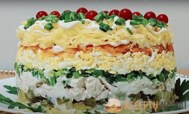Mėsos salotos “Lux”. Tinka įprastiems pietums ir šventiniam stalui: 2 rūšių švelnios mėsos sudėtis.