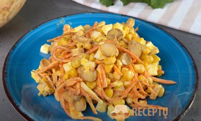 Dirbtinės salotos be mėsos. Sudėtyje tik 4 paprasti produktai: visi svečiai užrašė receptą.