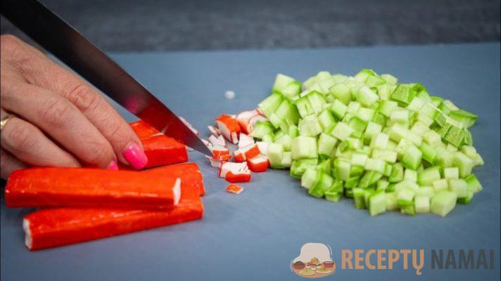Salotos su cukinijomis ir krabų lazdelėmis – tikras radinys naujų skonių derinių mėgėjams. Gaivumas ir...