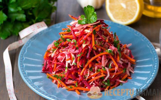 Daržovių salotos dažniausiai ruošiamos kaip garnyras, bet mūsų salotos bus sotesnės, bet ne per daug....