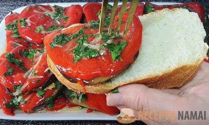 Baklažanų ir paprikų užkandis. Tai pats skaniausias receptas, su kuriuo man teko susidurti