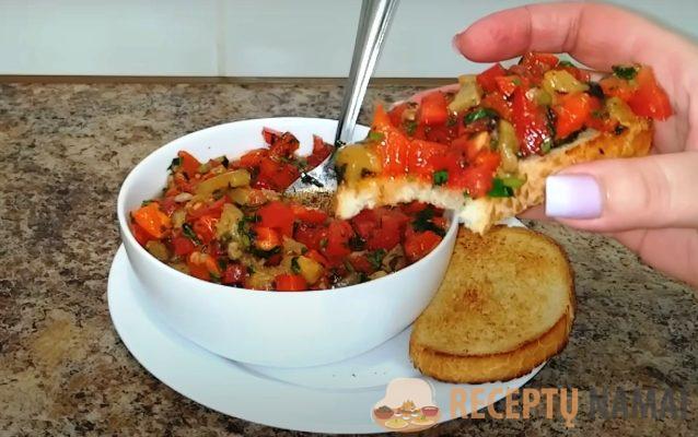 Salotų užkandis per 15 minučių. Keptos paprikos su skaniu marinatu