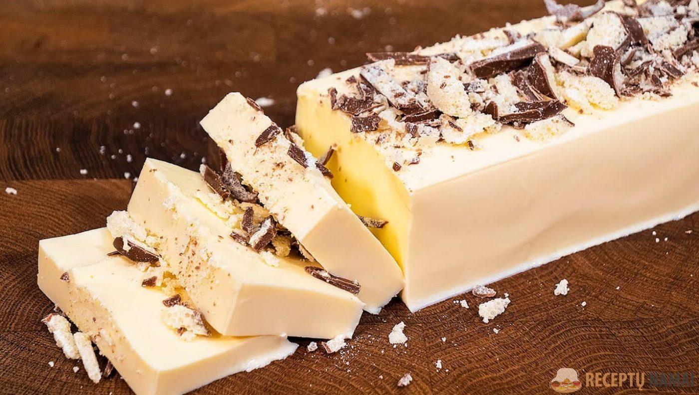 Formą desertui galima pasidaryti iš stačiakampės pieno dėžutės arba silikoninės formos.