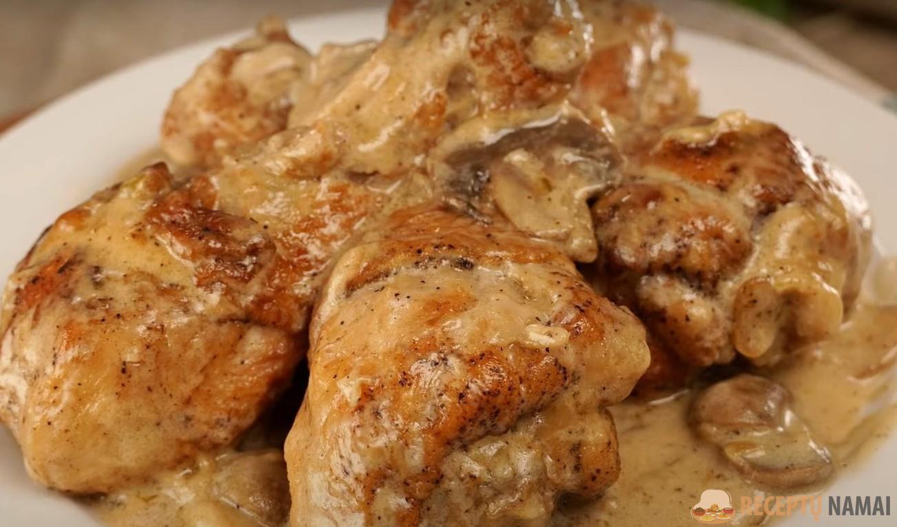 Blauzdelės su grybais grietinėlės padaže yra ne tik skanios, bet ir vizualiai