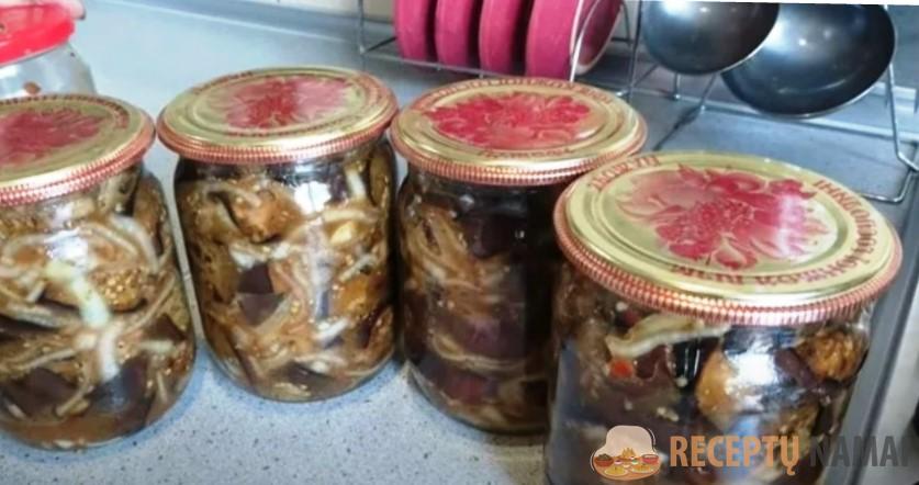 .) Mūsų šeimoje baklažanų konservavimas yra privalomas. Gaminame pagal įvairius receptus, bet šis per pastaruosius kelerius metus tapo mėgstamiausiu (sūnaus ir marčios prašymu gaminu daug iš karto). Baklažanai iš tiesų būna nepaprastai skanūs, todėl jų uždarome daugiau, kad užtektų visai žiemai.