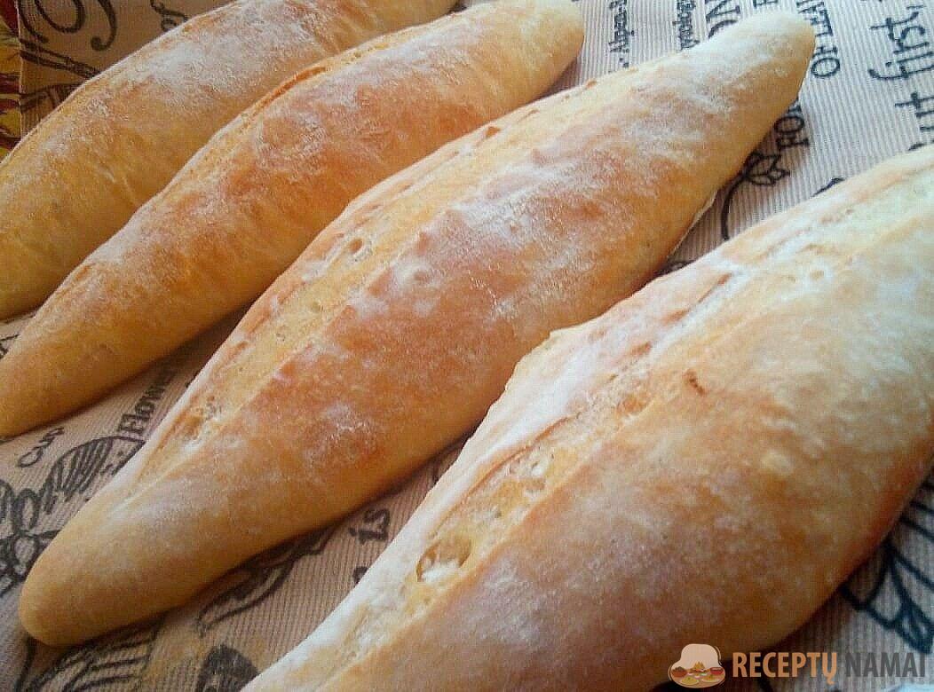 - Persijokite miltus per sietelį ant kepalų ir padarykite įpjovas išilgai kiekvienos duonos.