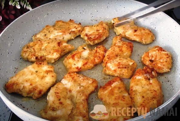Dabar supilkite paruoštą masę ir dėkite į 200 laipsnių įkaitintą orkaitę – kepkite, kol atsiras skani auksinė plutelė.