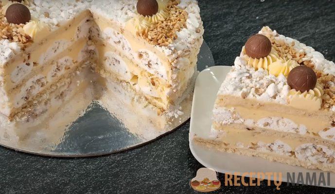 Prieš patiekiant pyragą galima papuošti plakta grietinėle, tačiau galima patiekti ir be jų – desertas ir taip gavosi labai saldus