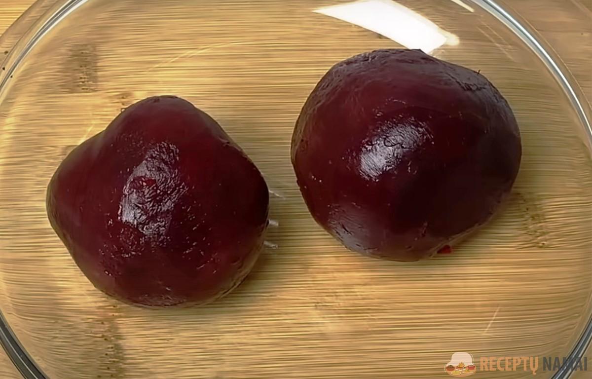 Burokėlius išvirkite arba iškepkite, nulupkite ir sutarkuokite stambia tarka.