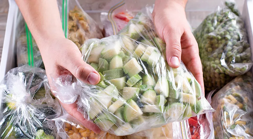 Cukinijas taip pat galite užšaldyti. Supjaustykite arba sutarkuokite (tik būtinai nuspauskite drėgmę), sudėkite porcijomis į užsegamus maišelius ir įdėkite į šaldiklį. Tokias cukinijas galite laikyti iki 3 mėnesių.