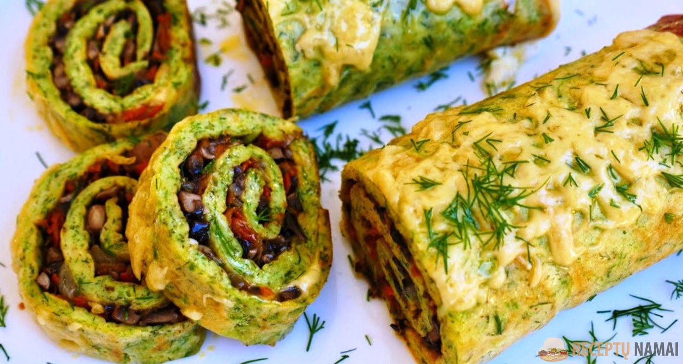 Atvėsusį šiltą vyniotinį galima patiekti vakarienei. Šį cukinijų suktinuką taip pat galima gaminti su mėsos įdaru.