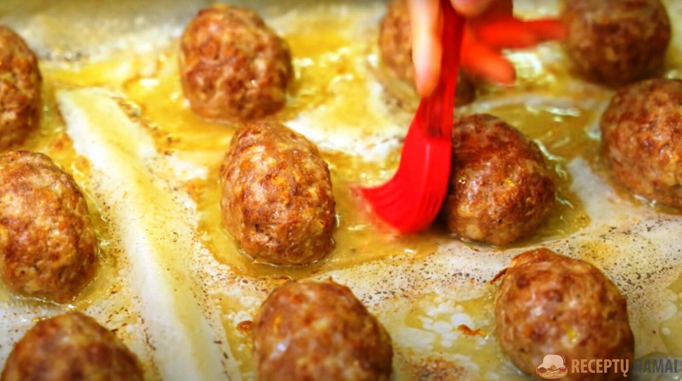 Ant kepimo skardos ištiesti pergamentą, iš faršo suformuoti nedidelius kotletukus, iš karto perkelti ant kepimo popieriaus. Orkaitė turi būti įkaitinta iki 200 laipsnių. Kotletus kepkite orkaitėje apie pusvalandį.