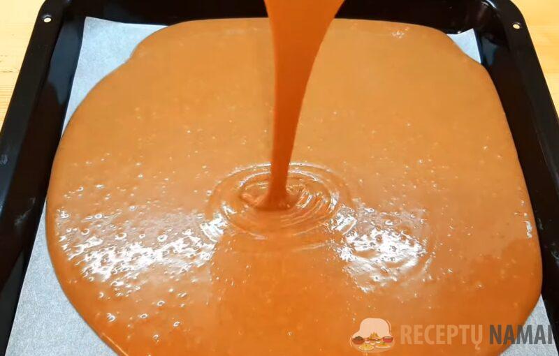 Paruoštą pyragą užpilkite glajumi, paskirstydami jį po visą paviršių.