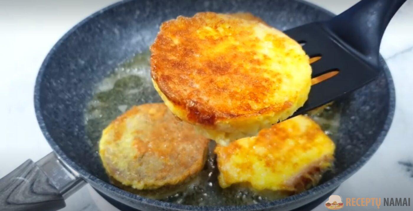 Keptuvėje įkaitinkite augalinį aliejų, kepkite pyragėlius ant vidutinės ugnies, kol iš visų pusių apskrus.