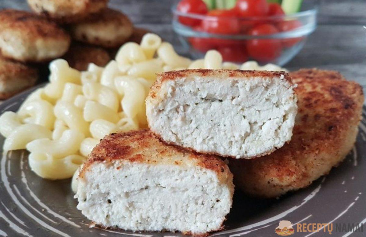 Suformuojame kotletus, apvoliojame džiūvėsėliuose arba miltuose ir dedame ant riebalais išteptos kepimo skardos.