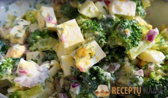 Druskos ir pipirų pagal skonį, suberkite susmulkintą česnaką ir gerai išmaišykite.