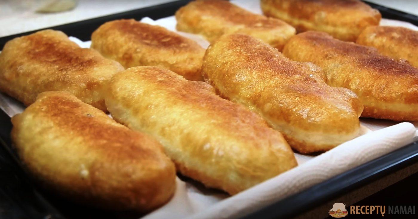 Paplotėlius iškočiokite į ovalius pyragėlius, į kiekvieną dėkite įdaro ir užspauskite tešlos kraštus