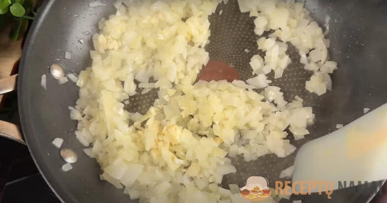 Patiekite su padažu: grietinę sumaišykite su per presą išspaustu česnaku. Pridėkite paprikos, majonezo, druskos ir pipirų. Viską gerai išmaišykite
