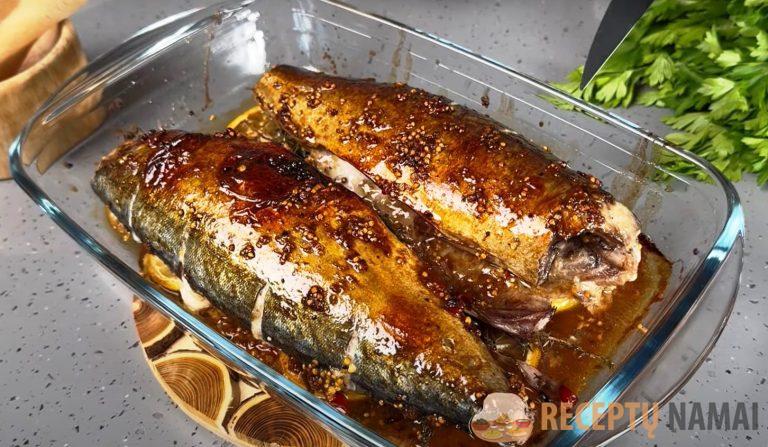 Orkaitėje kepta žuvis būna labai skani ir sveika. Mėsa išsaugo visas maistingąsias medžiagas, išlieka sultinga ir prisotinta marinato skonio.