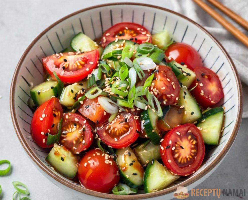 Korėjietiški pomidorai – tai spalvingas ir sodrus patiekalas, kuriame sultingi pomidorai įgauna visiškai naują skambesį dėl marinato iš česnakų, acto, pipirų ir žolelių.