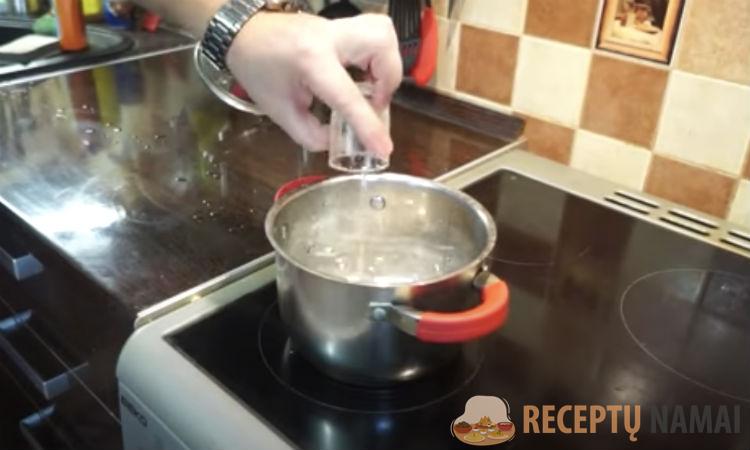 Žinoma, makaronų neužpilsime verdančiu vandeniu, kaip siūlo gamintojas. Į puodą supilkite apie 550 mililitrų vandens ir užvirinkite.