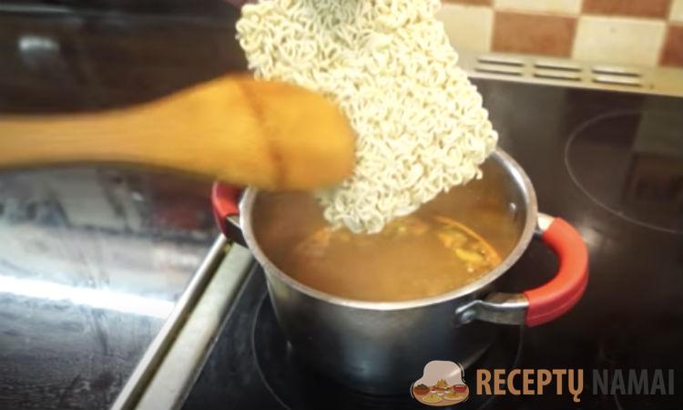 Atkreipkite dėmesį į sultinio spalvą – ji gerokai skiriasi nuo tos, kurią galėtume gauti makaronus tiesiog užpylę verdančiu vandeniu. Prieskoniai skirti virti puode.