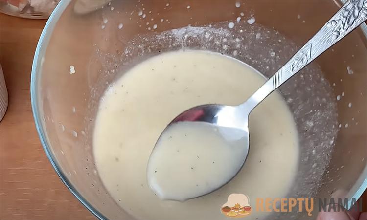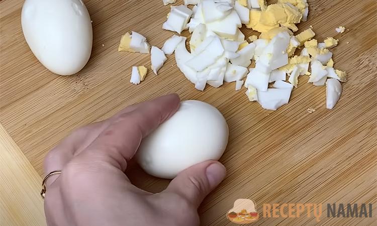 Tuoj pat pasigaminkite paprastą salotų padažą: giliame dubenyje sumaišykite 150 mililitrų alyvuogių aliejaus, šaukštą obuolių acto, po pusę arbatinio šaukštelio garstyčių ir cukraus, trečdalį arbatinio šaukštelio druskos, truputį maltų juodųjų pipirų ir per spaudyklę pertrintą česnako skiltelę.