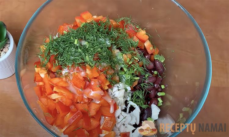 Šiaurinių pupelių salotos gaunasi labai sočios. Jas galima patiekti vietoj sočios vakarienės