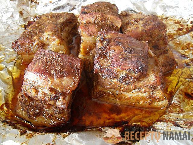 Vandens į skardą pilti nereikia. Lašiniai atiduos šiek tiek sulčių, tačiau neatidarykite folijos, kad sultys neišgaruotų