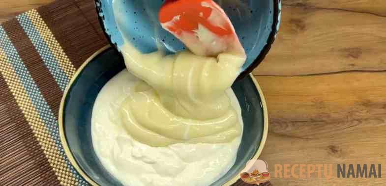 - 400 g 25 % grietinės (kambario temperatūros grietinės, kad ji taptų reta ir viską būtų lengviau sumaišyti).