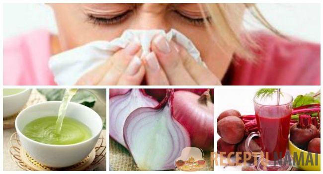 Susmulkinkite svogūną ir paimkite mažus gabalėlius – maždaug žirnio dydžio. Įdėkite juos negiliai į abi nosies takus. Tada užspauskite nosį ir kelias sekundes kvėpuokite per burną. Pradėsite čiaudėti, o po poros minučių pajusite palengvėjimą. Jei jau varva nosis, tai turėtumėte kartoti kelis kartus per dieną. Nesijaudinkite, kad svogūnas nudegins jautrią gleivinę: gabalėliai yra maži ir nosyje išliks ne ilgiau kaip dvi minutes.