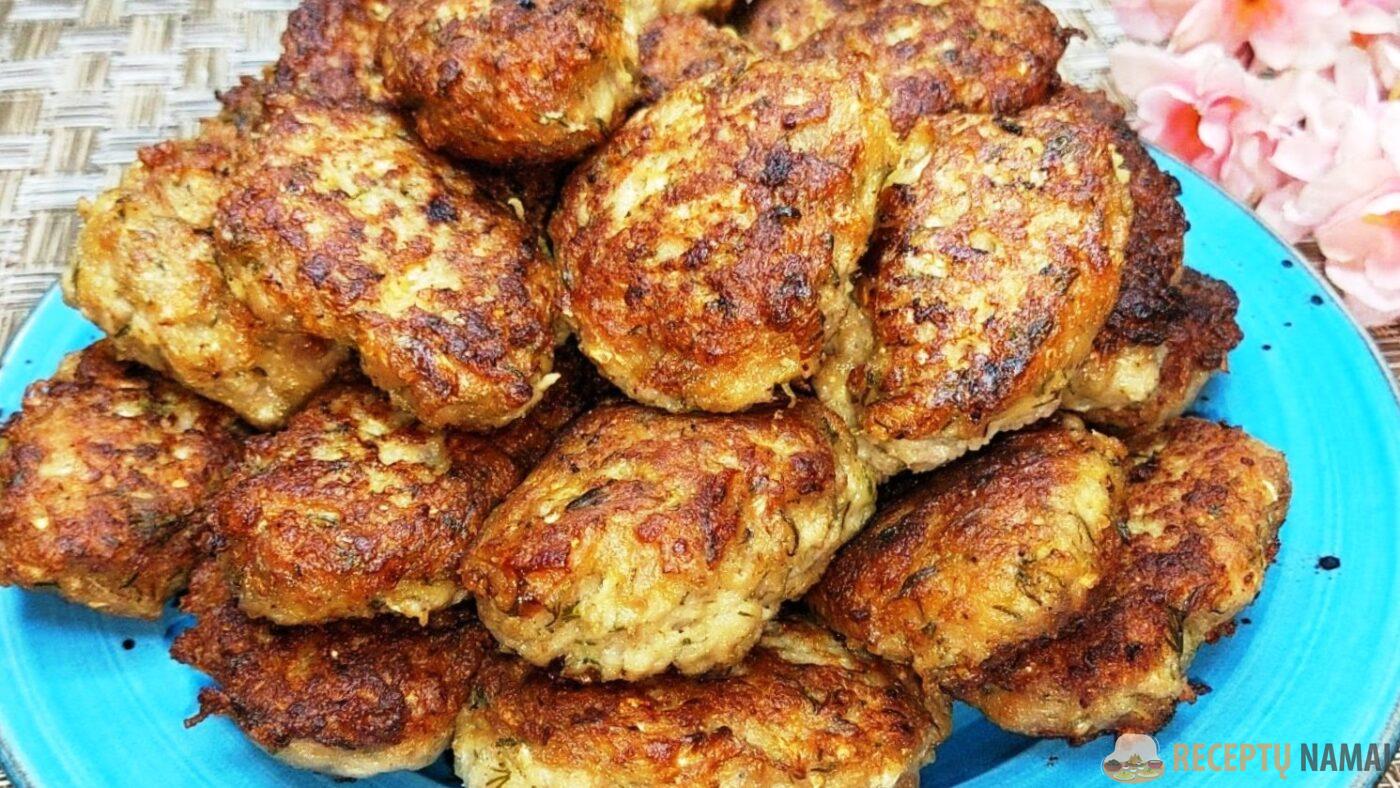 Į mišinį persijojame miltus, išminkome kotletams skirtą mėsos konsistenciją. Keptuvėje įkaitiname augalinį aliejų, suformuotus kotletus kepame po dangčiu iš abiejų pusių, kol paruduoja.