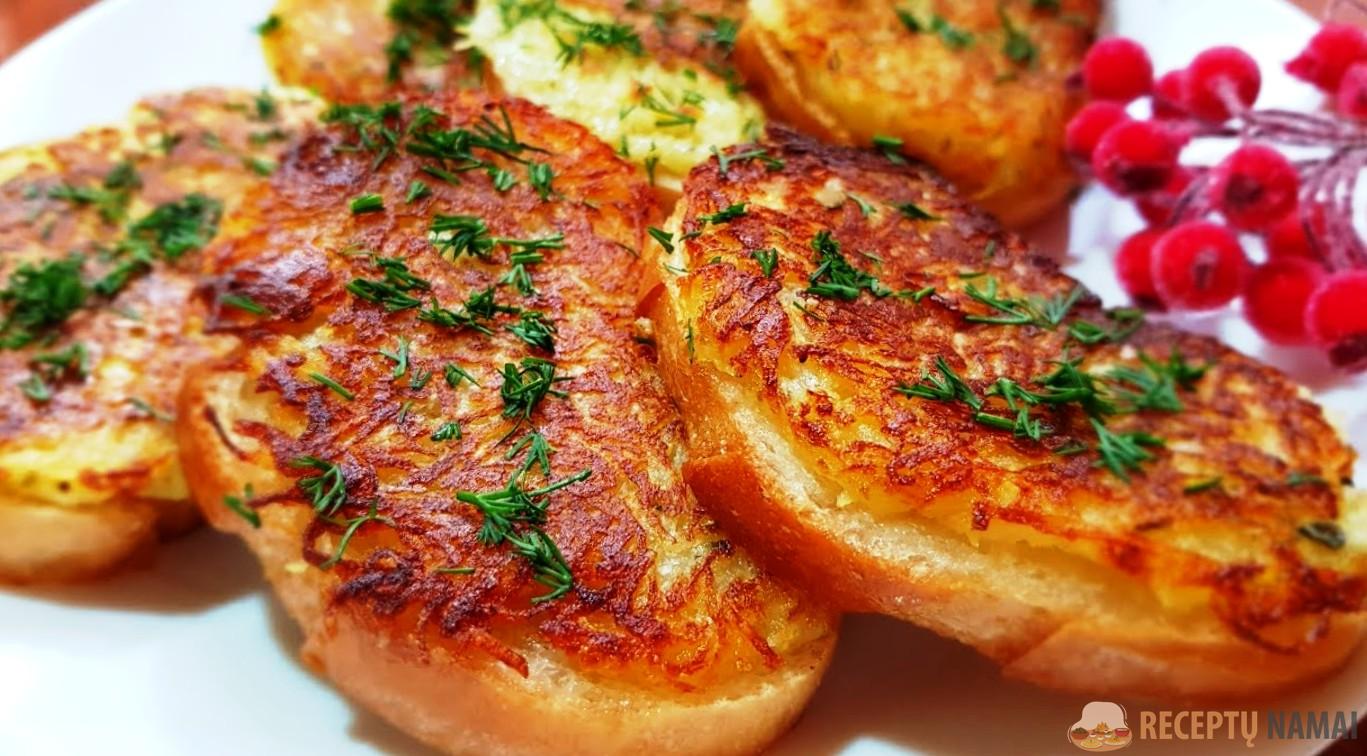 Bulvių masę dėti ant duonos riekelių.
