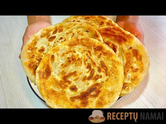 Tešla iškočiojama ir tada kepama ant sausos keptuvės. Kepti reikia ant vidutinės ugnies, kad katlama tolygiai iškeptų ir būtų pagamintos keturios porcijos.