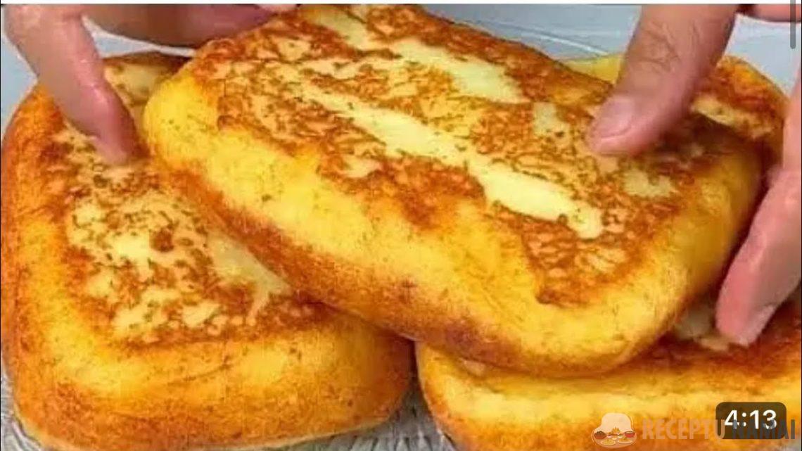 Paruoštą patiekalą sudėkite ant popierinio rankšluosčio, kad pasišalintų aliejaus perteklius. Supjaustykite porcijomis ir patiekite karštas – kaip sotų užkandį arba kaip visavertį patiekalą, pavyzdžiui, su salotomis.