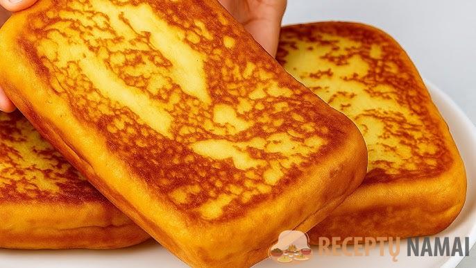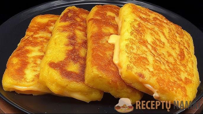 Paruoštą patiekalą sudėkite ant popierinio rankšluosčio, kad pasišalintų aliejaus perteklius. Supjaustykite porcijomis ir patiekite karštas – kaip sotų užkandį arba kaip visavertį patiekalą, pavyzdžiui, su salotomis.