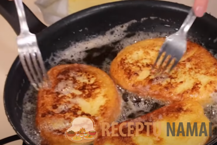 Keptuvėje įkaitinkite pakankamai aliejaus. Atsargiai išleiskite suformuotą bulvių voką į įkaitintą aliejų ir apversdami kepkite, kol taps auksinis ir traškus.
