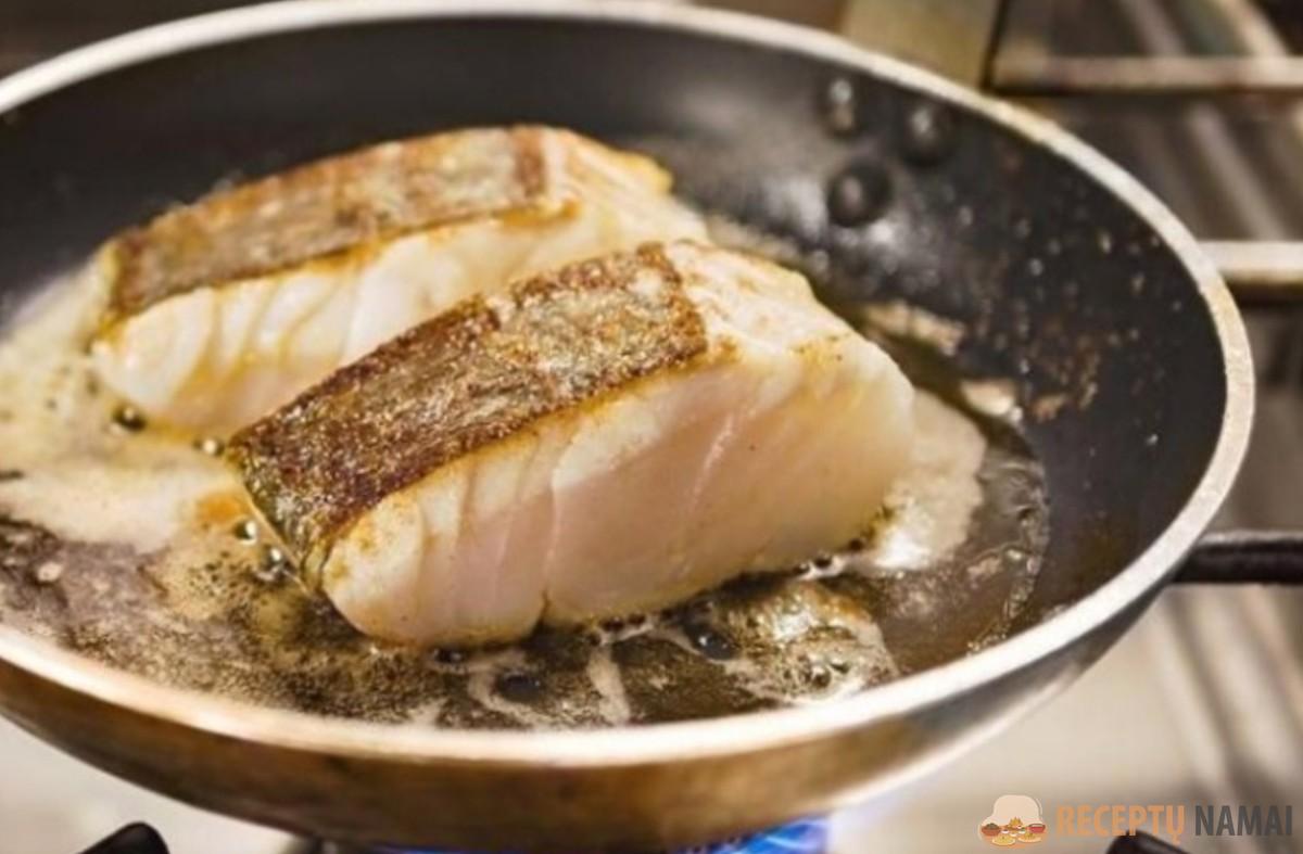Cukrus taip pat suteiks lengvą karamelizaciją kepant, žuvis pasidengs auksine plutele.