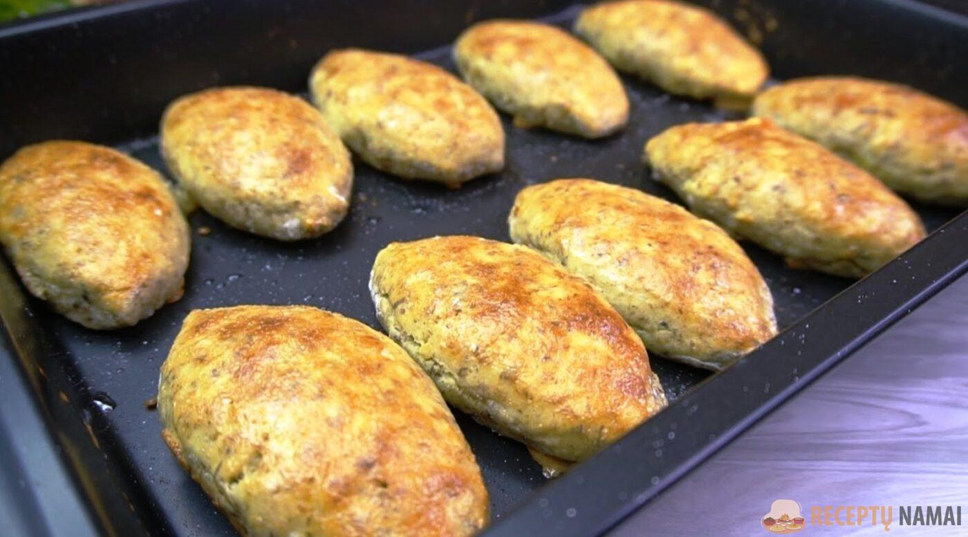 Suformuokite kotletus, į vidų įdėkite faršo