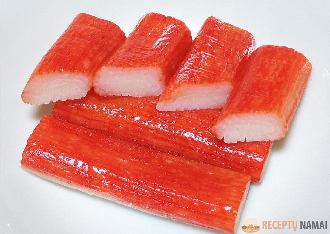 Krabų lazdelės – puikus krabų mėsos pakaitalas. Konservuotų krevečių, konservuotos žuvies.