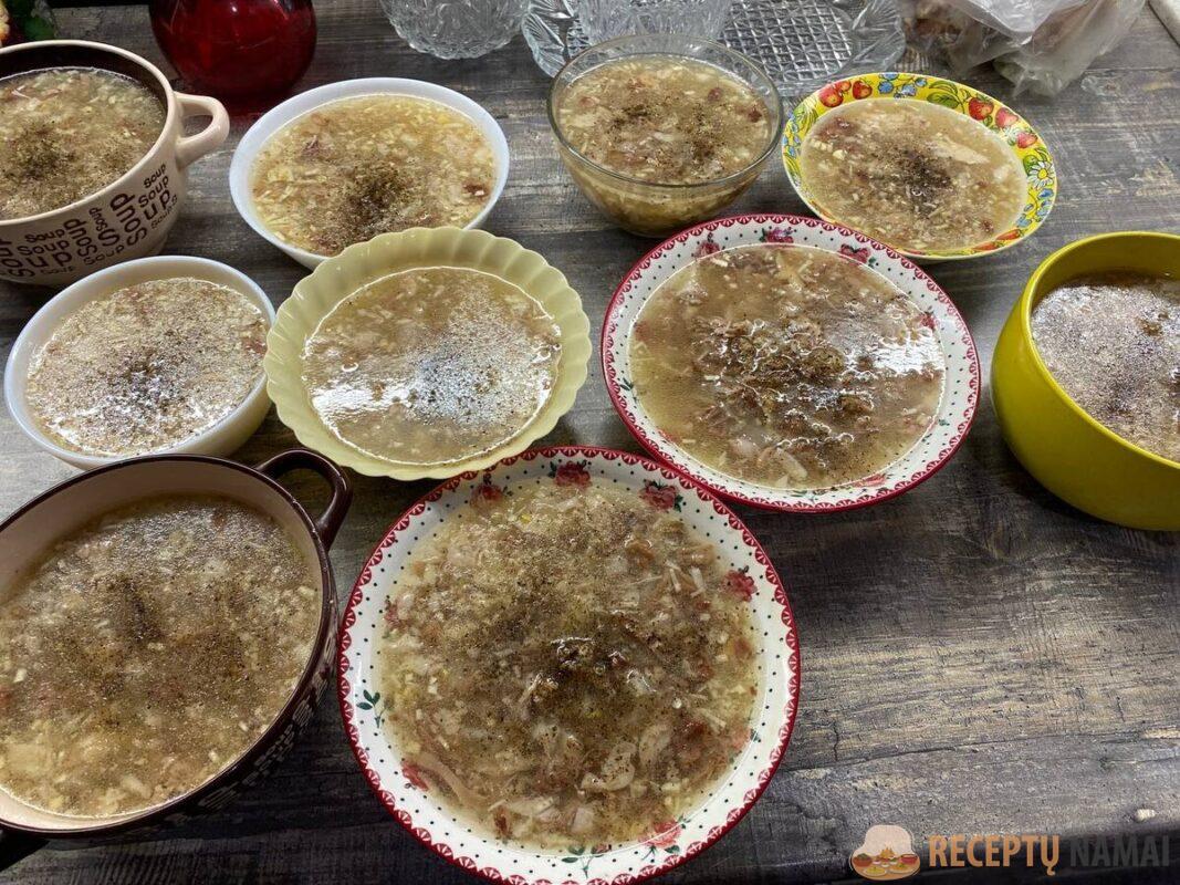 Šaltą vandenį reikia virti kelias valandas, mažiausiai 6-8. Tiek laiko reikia, kad mėsa gerai išvirtų, o šaltas vanduo sustingtų neįdėjus želatinos