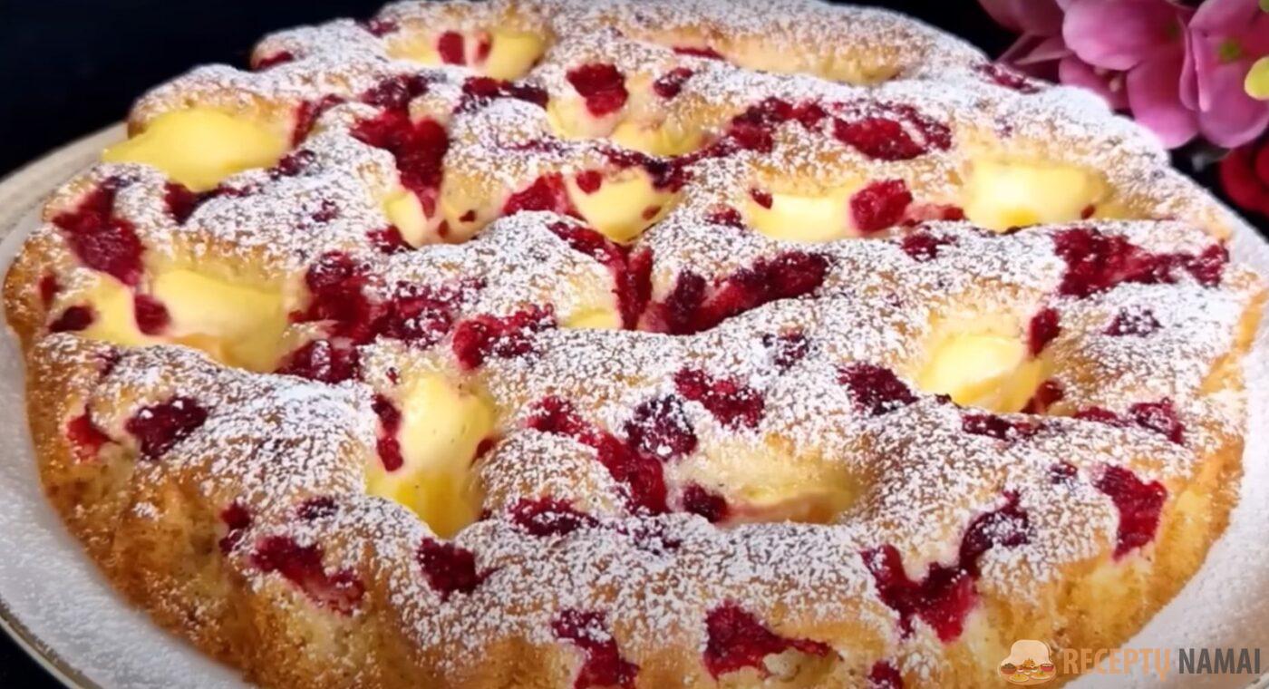 Rezultatas – puikus pyragas. Pyragą saldumo dėlei galite pabarstyti cukraus pudra.
