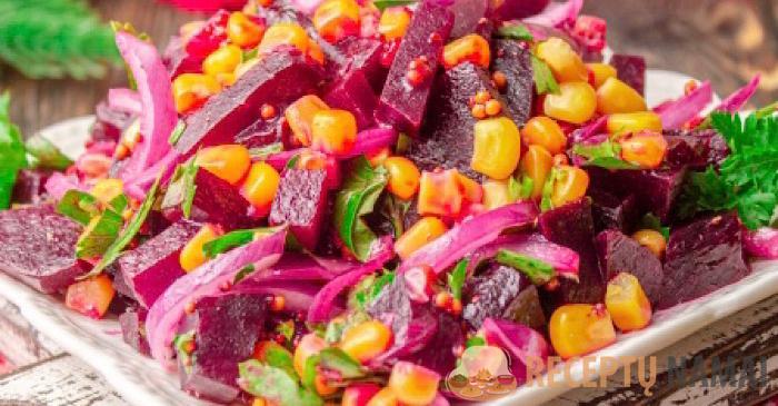 Lengvos ir skanios salotos su burokėliais ir kukurūzais su nuostabiu aromatu