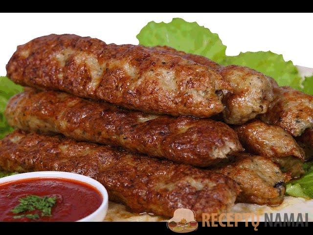 - Kepimo skardą patepkite augaliniu aliejumi ir atsargiai sudėkite ant jos iešmelius su malta mėsa. Įkaitinkite orkaitę iki 190 laipsnių ir kepkite kebabus 25 minutes.