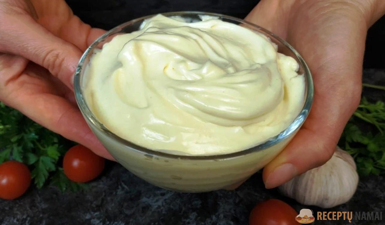 Naminis majonezas visada skanesnis, aromatingesnis, švelnios konsistencijos, jo sudėtyje yra tik aukštos kokybės produktų. Žinoma, tokio padažo negalima ilgai laikyti ir naudoti kepimui, jis sluoksniuojasi, tačiau vienkartiniam naudojimui jis tinka.