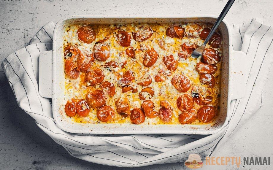 Pomidorų ir fetos paruošimas – skonių koncentracija orkaitėje
