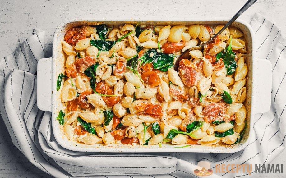Pomidorų ir fetos paruošimas – skonių koncentracija orkaitėje