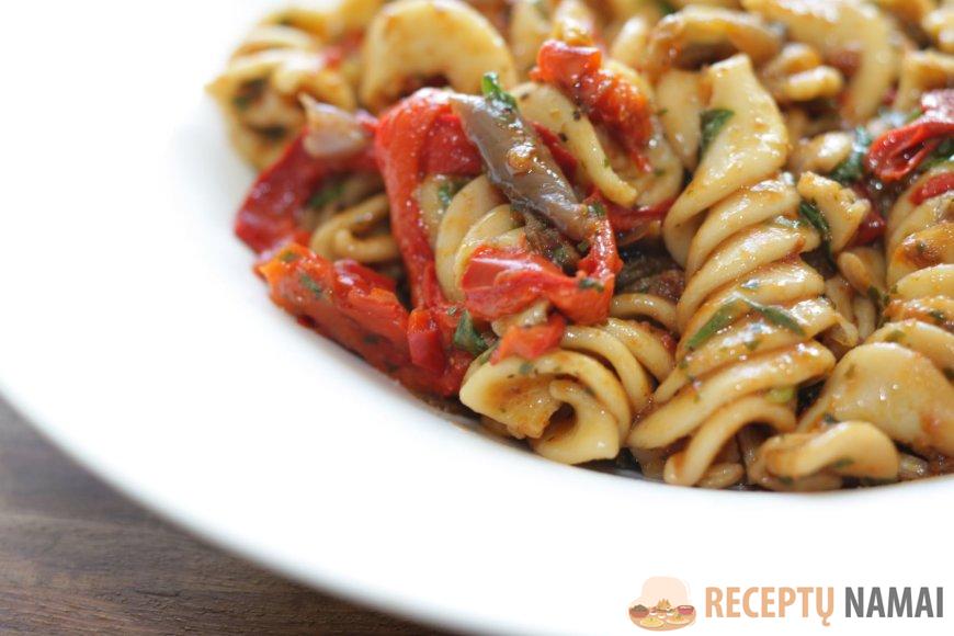 Makaronai – 300 g (geriausiai tinka fusilli, penne arba farfalle)