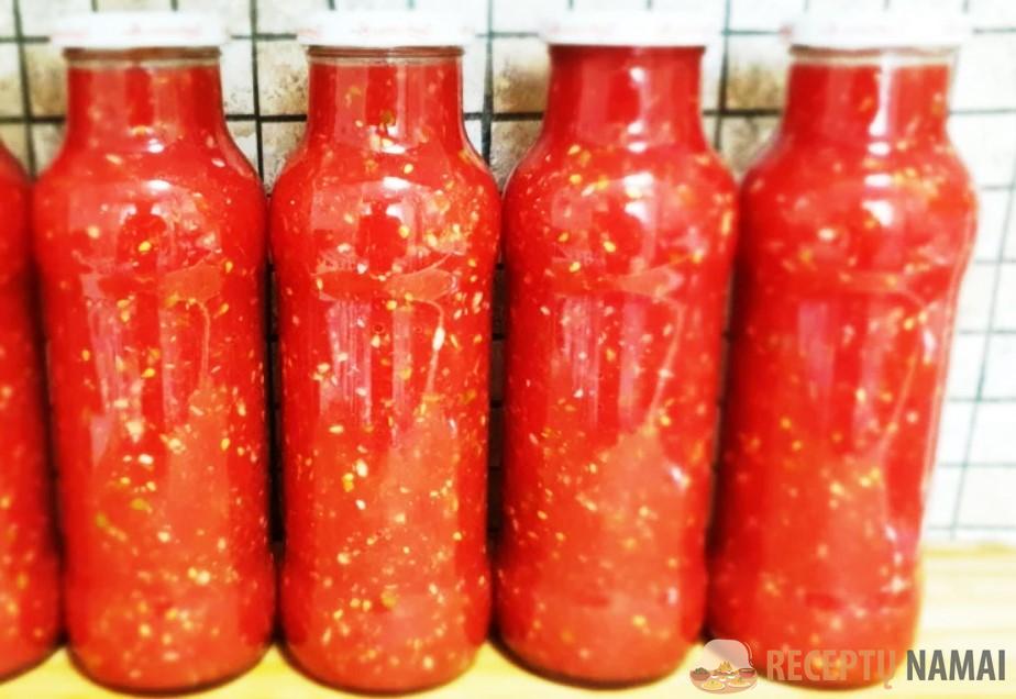 Pomidorai susmulkinami mėsmale kartu su žievele