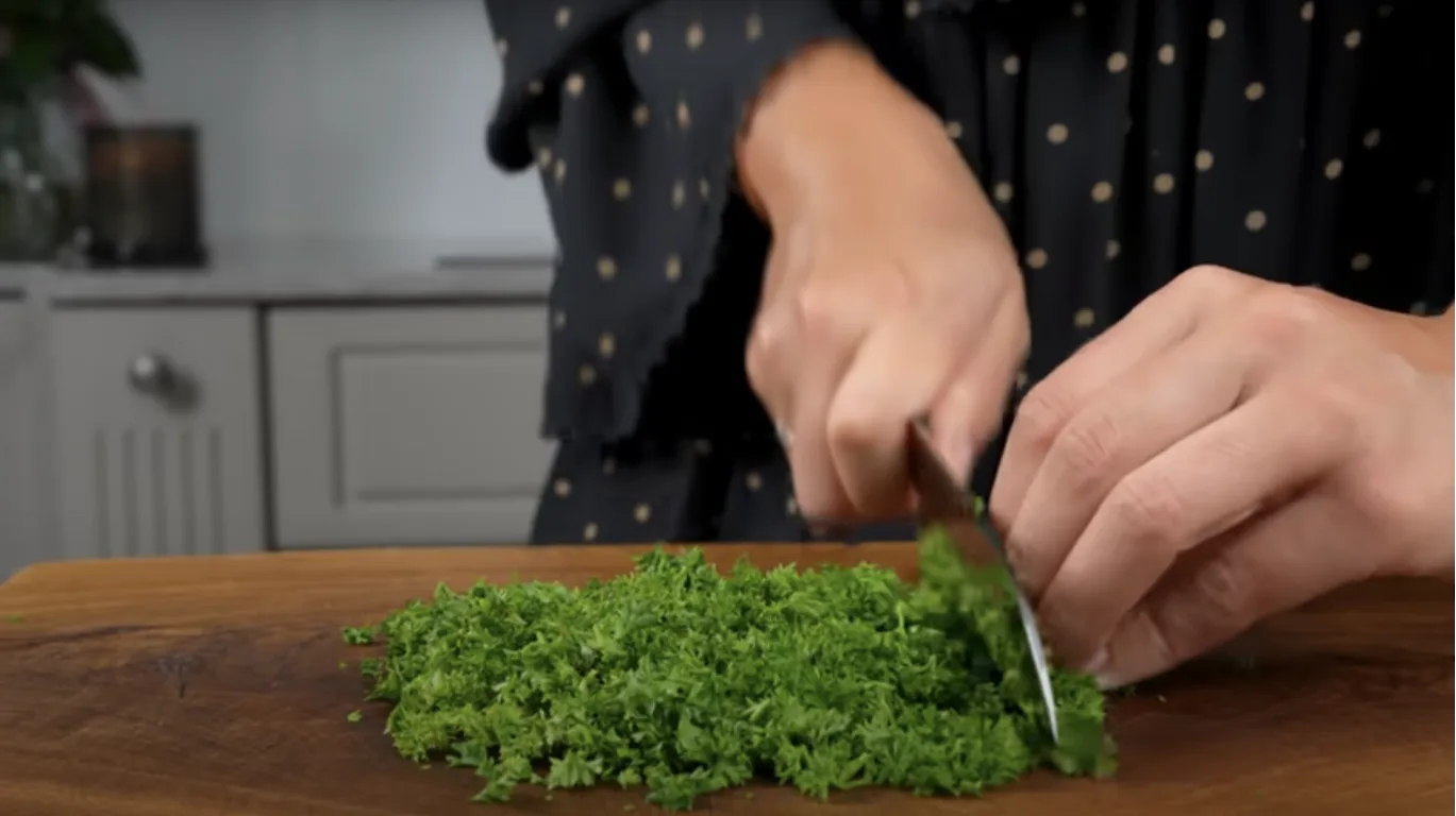 Susmulkinkite petražoles ir suberkite į likusius ingredientus.
